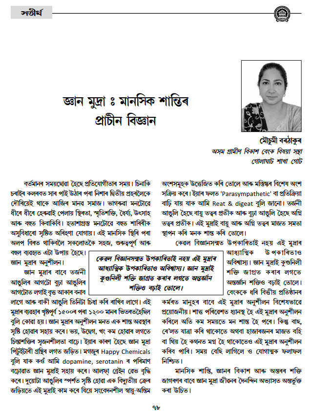 • জ্ঞান মুদ্ৰাঃ মানসিক শান্তিৰ প্ৰাচীন বিজ্ঞান
