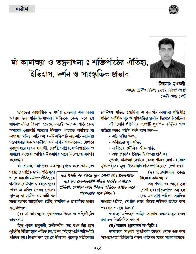 • মাঁ কামাক্ষ্যা ও তন্ত্ৰসাধনাঃ শক্তিপীঠের ঐতিহ্য, ইতিহাস, দৰ্শন ও সাংস্কৃতিক প্ৰভাব