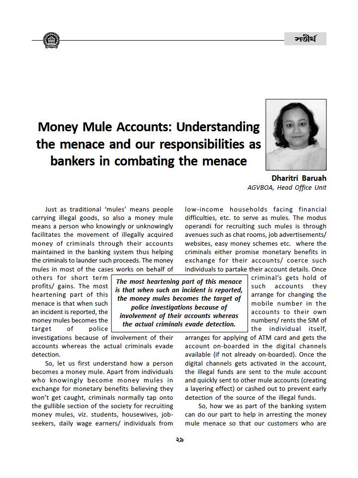 Money Mule Accounts: Understanding the menace and our responsibilities as bankers in combating the menace