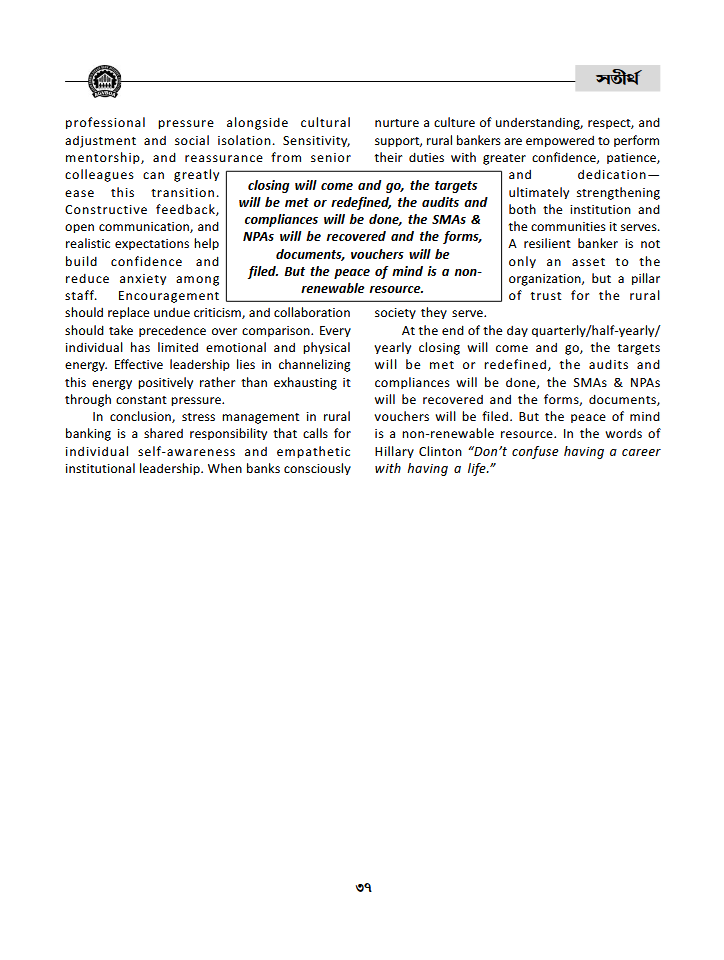 Stress Management in Rural Banking