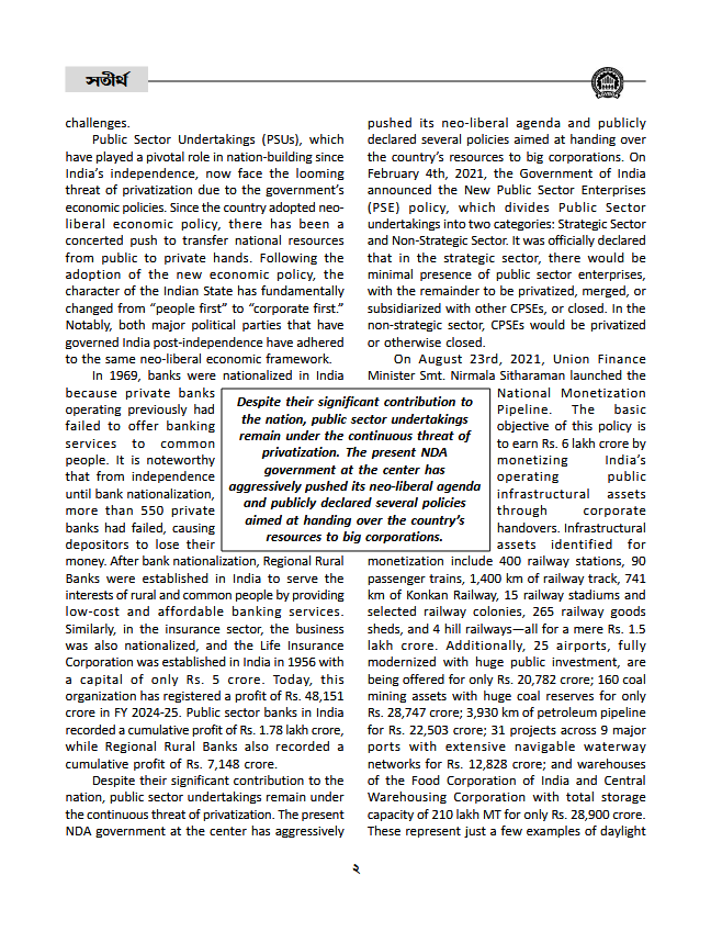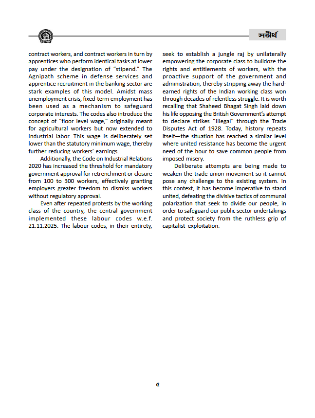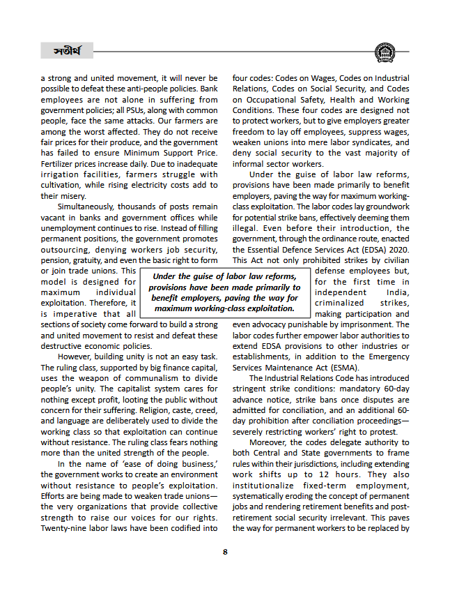 • Working Class Unity: Necessity and Challenges